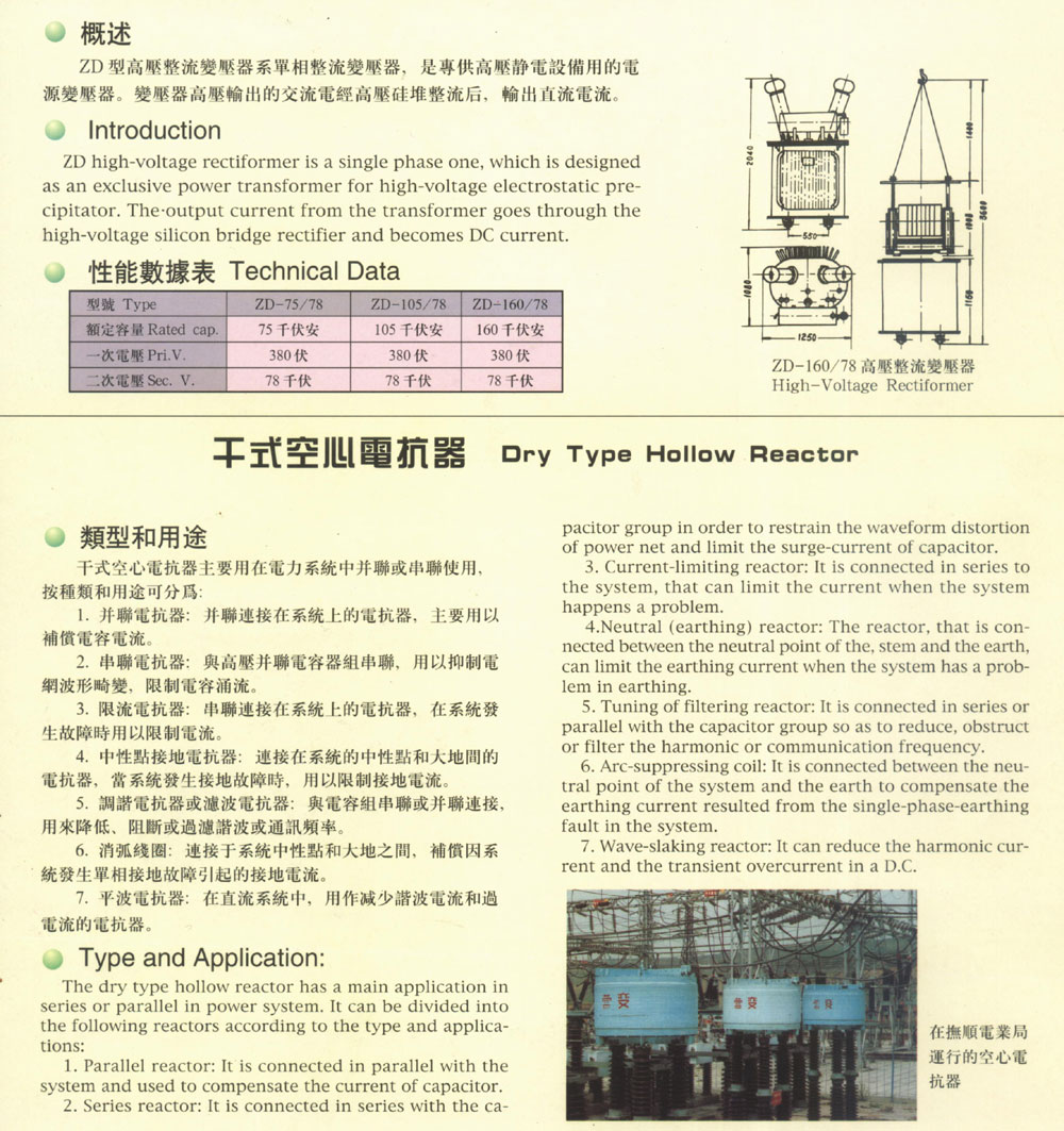 空芯電抗器及高壓整流變壓器